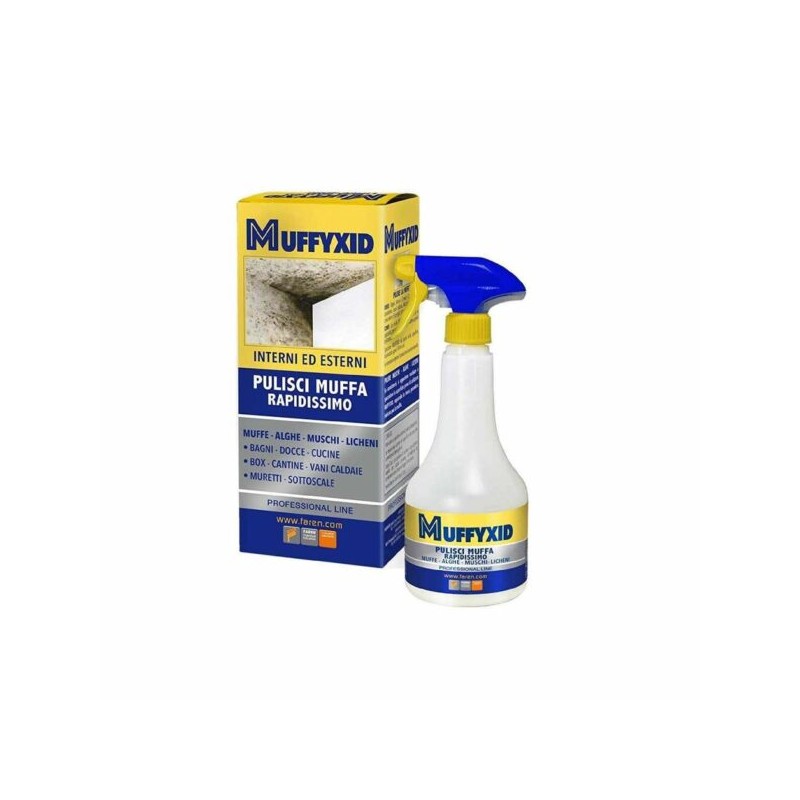 Faren MUFFYXID 500 ML Rimuovi Muffa, Antimuffa, Pulitore della Muffa ad Azione Rapida, Igienizzante, Elimina rapidamente Muffe, Funghi, Muschi e Alghe, ritarda la ricomparsa, 500ml