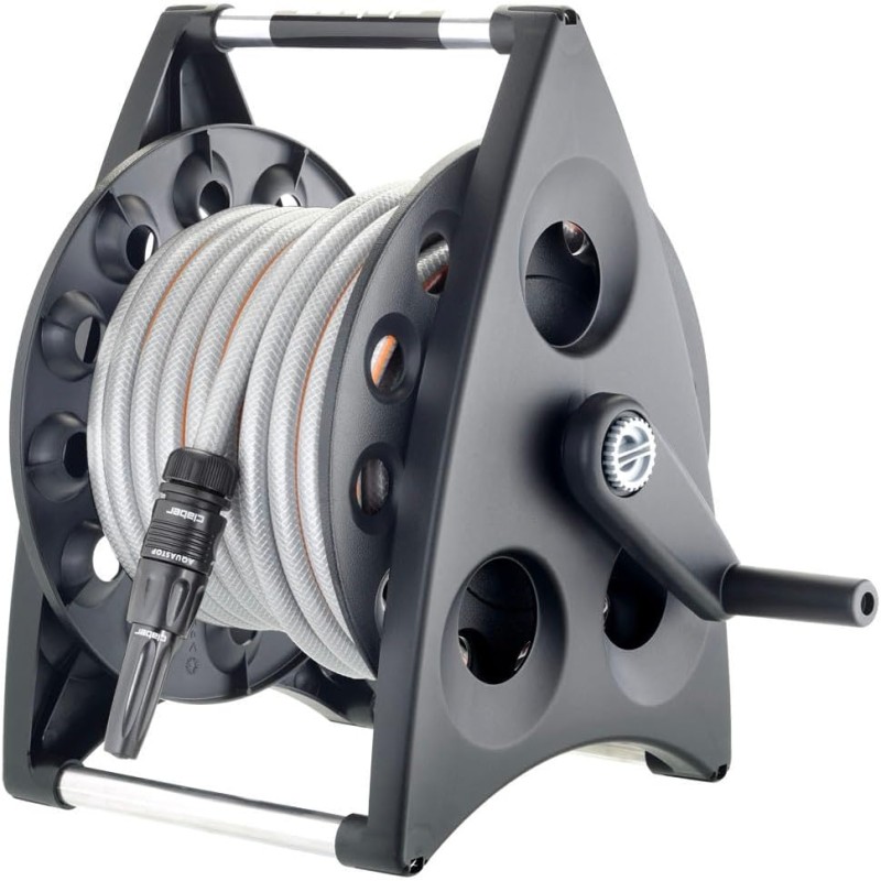 Claber Avvolgitubo per Giardino Esterno Carrello in Metallo con Ruote Portata mt.130/Ø tubo 1/2\'\' - mt. 100/Ø tubo 5/8" - mt. 60/Ø tubo 3/4\'\' - Metal Gemini - 8894
